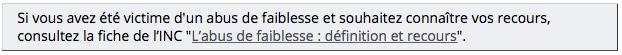 Vous trouverez dans les fiches pratiques de INC Consommation, tous les renseignements concernant l’Abus de Faiblesse