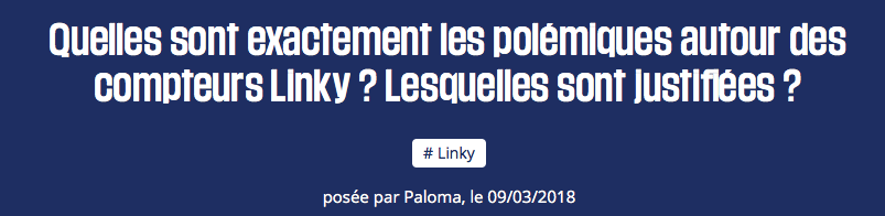 environnement Environnement : Quelles sont les polémiques autour des compteurs Linky ? 29 mars 2018 afddouvres Quelles sont les polémiques autour des compteurs Linky ? Question posée sur CHECKNEWS.FR Lien vers l'article