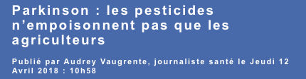 ou on peut lire que le lien entre la maladie de Parkinson et l’exposition aux pesticides chimiques a été démontré par plusieurs études
